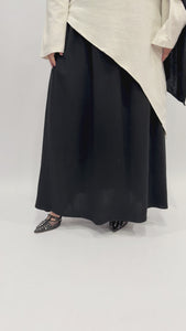 Linen Cotton Pleated Skirt | Black